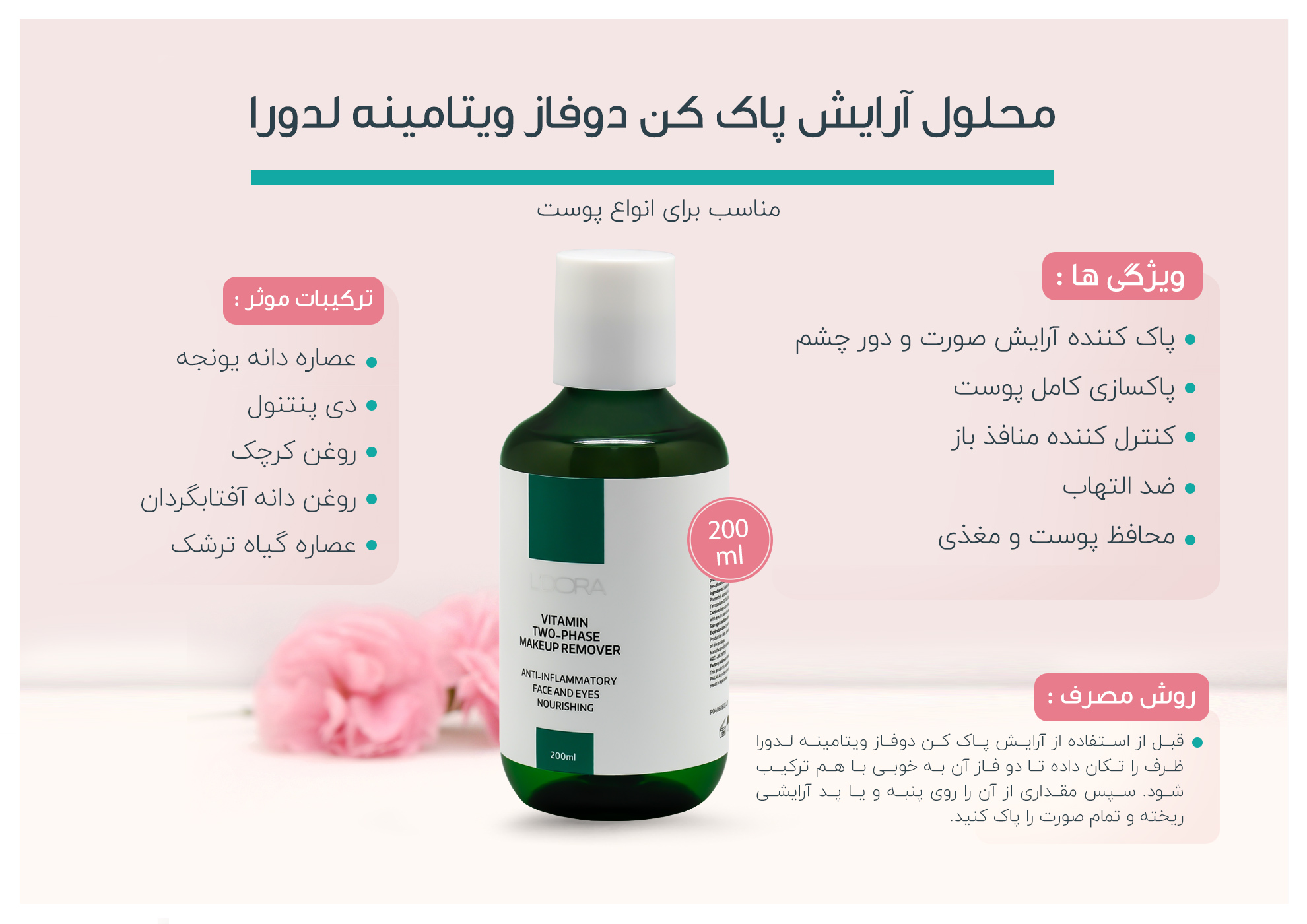 محلول آرایش پاککن دوفاز ویتامینه لدورا 200 میلی لیتر: ۲۰۰